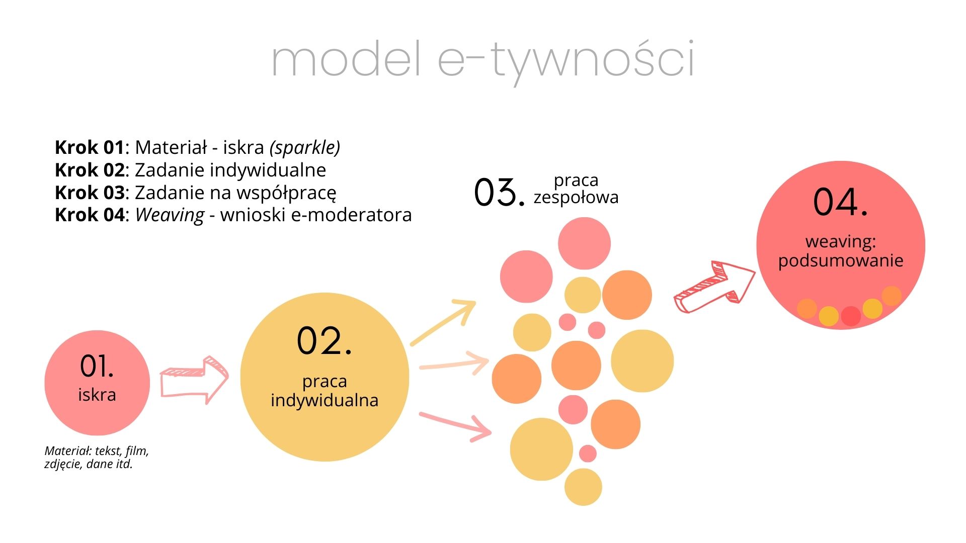 ★ IV. Podsumowanie moderatora – cykl e-tywności zamyka podsumowanie ze strony nauczyciela-moderatora, który np. omawia i zamyka cały wątek dyskusji na forum, przesyła własne oceny i informacje zwrotne do pracy studentów.